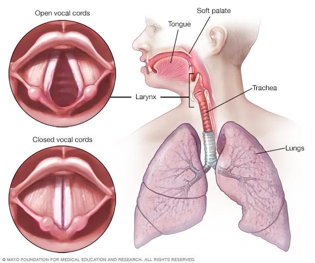 What follows is a transcript of the very casual conversation I had with my wife Anna. One where the vocal cords—they’re really vocal folds because they’re not quite cords—are stuck in the middle of the larynx (voice box), in what’s understood as a “closed” position.